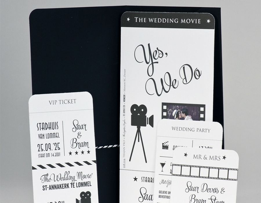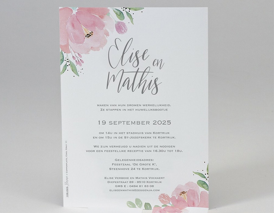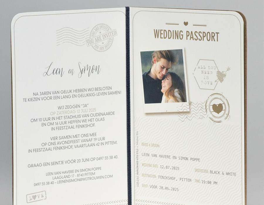 Het ontwerp kan je zelf aanleveren of wij verzorgen dit voor je, of… je kiest een kaart bij Buromac of Belarto. Je keuze is gemaakt? Stuur ons dan het referentienummer door. Doe inspiratie op tijdens een bezoek aan één van de trouwbeurzen of neem alvast een kijkje op de site van Trendy Trouwen. Graag spreken we af voor een verkennend gesprek, daarna ontvang je een offerte op maat. Eenmaal die goedgekeurd, gaan we aan slag voor jullie.