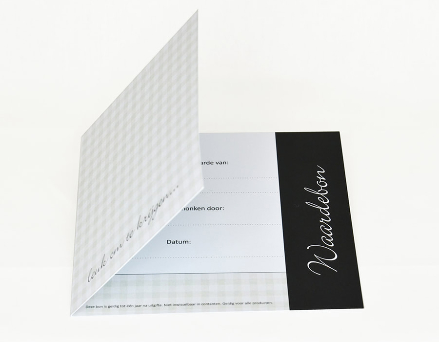 Laat een mooie waardebon ontwerpen en biedt deze te koop aan tegen een door u (of door de klant) bepaalde waarde.